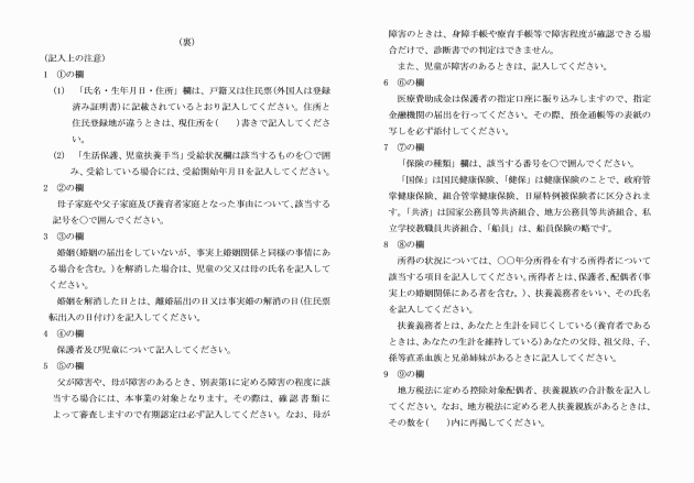 2 条例第9条第2項に規定する届出は、交付申請書兼受給者台帳に住民票及び保護者又はその配偶者若しくは扶養義務者の前年の所得の状況を証する書類を添えて、毎年10月末日までに行わなければならない。ただし、児童扶養手当受給者が継続して手当を受給する場合における現況届についてはこの限りではない。